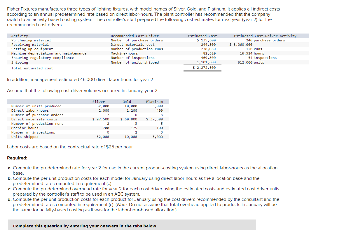 Solved Fisher Fixtures manufactures three types of lighting